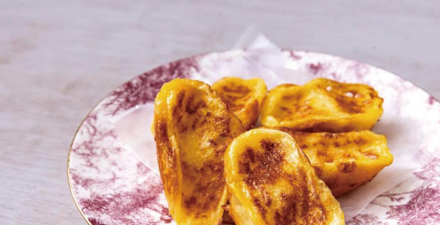 パンの廃棄ロスを減らすため「きまぐれフレンチトースト」を導入しています。焼き立てとして出せなくなったパンを、さらにおいしくお召し上がりいただくための商品です。その時によって残るパンが異なるので、日によって種類が変わる、気まぐれフレンチトーストです。